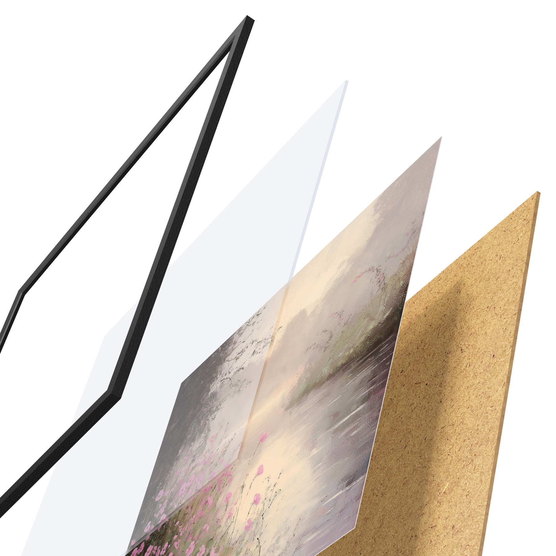 Das Poster besteht aus einem Rahmen, Plexiglas, einem gedruckten Bild und einer Rückwand aus Spanplatten. Dank der Halterungen auf der Rückseite kann das Poster sofort an die Wand gehängt werden.