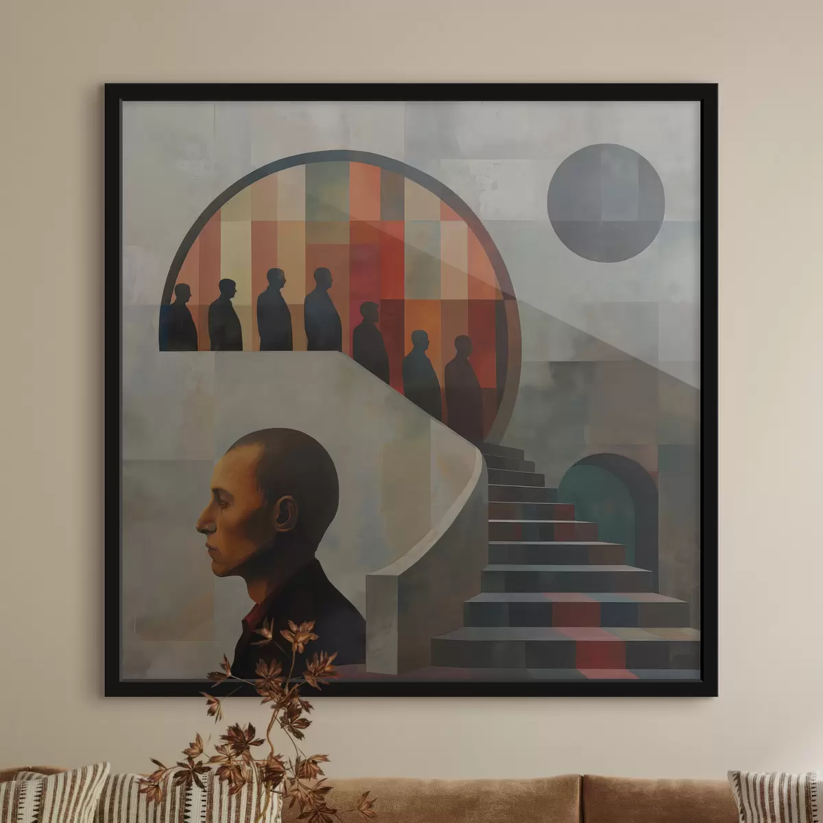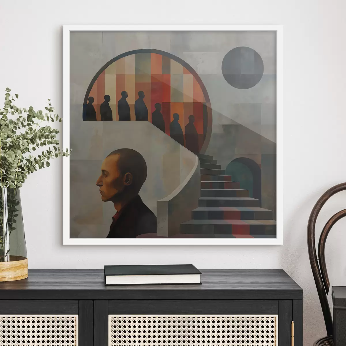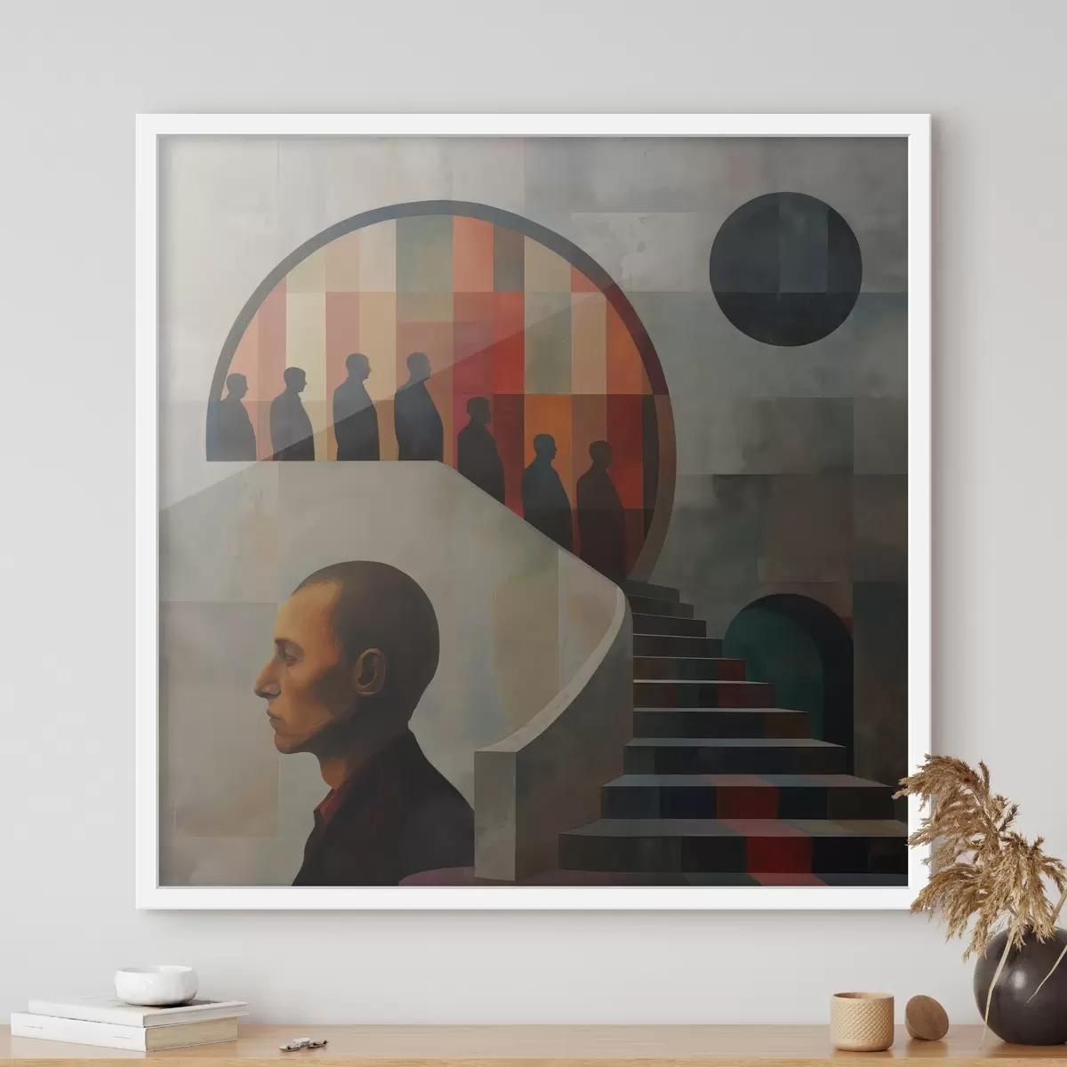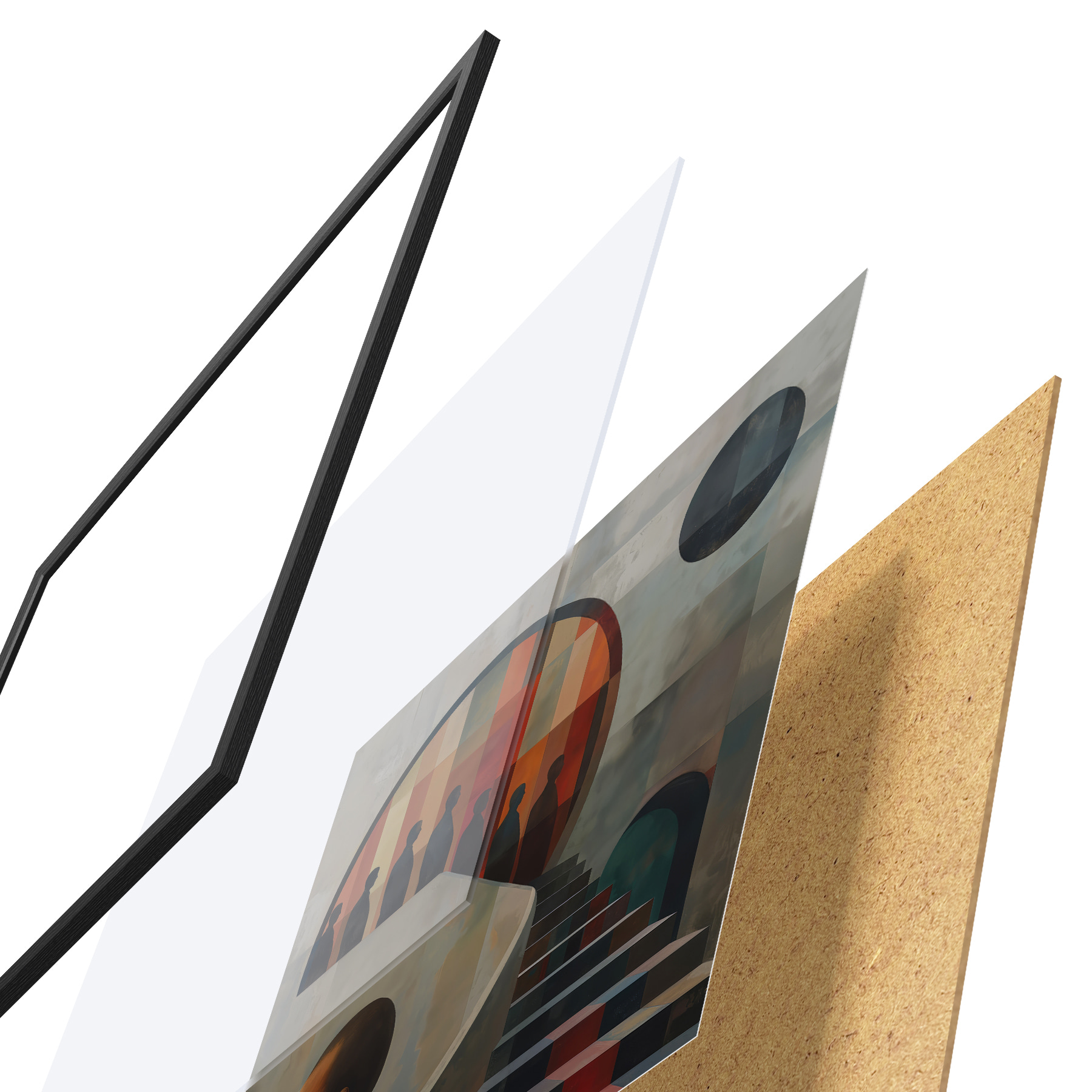 Das Poster besteht aus einem Rahmen, Plexiglas, einem gedruckten Bild und einer Rückwand aus Spanplatten. Dank der Halterungen auf der Rückseite kann das Poster sofort an die Wand gehängt werden.