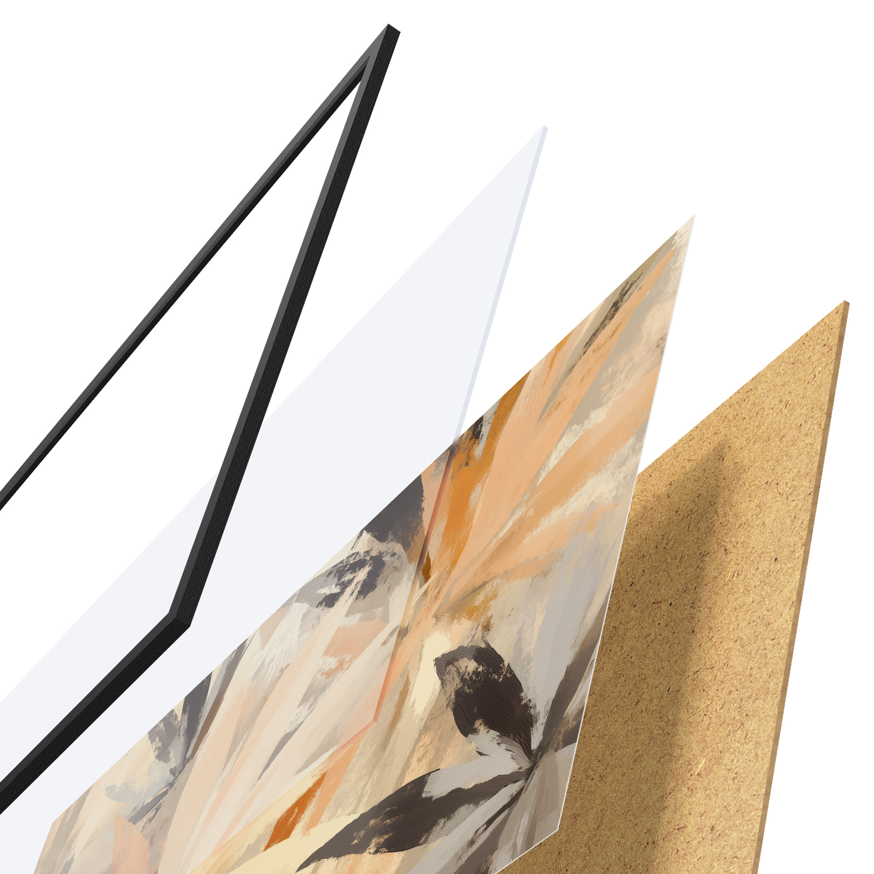 Das Poster besteht aus einem Rahmen, Plexiglas, einem gedruckten Bild und einer Rückwand aus Spanplatten. Dank der Halterungen auf der Rückseite kann das Poster sofort an die Wand gehängt werden.