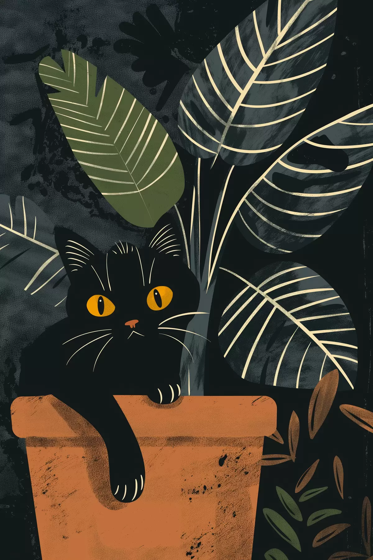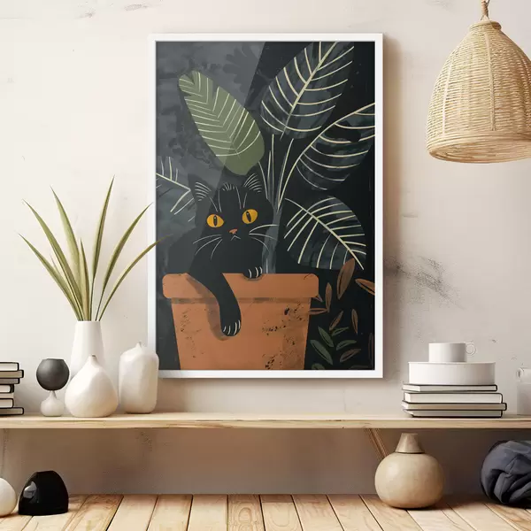 Poster Katze in einem Topf mit einer Blume Nr f40268