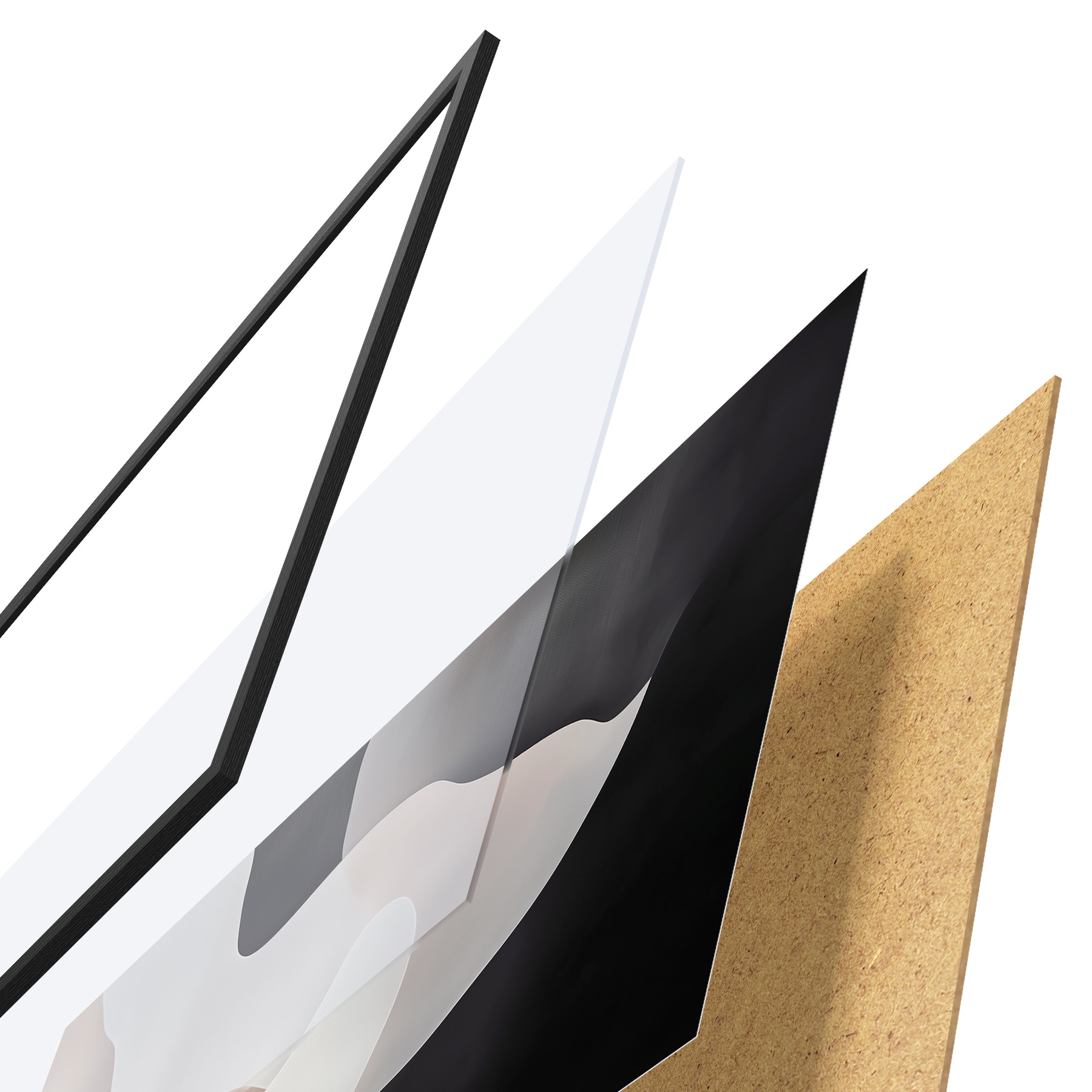 Das Poster besteht aus einem Rahmen, Plexiglas, einem gedruckten Bild und einer Rückwand aus Spanplatten. Dank der Halterungen auf der Rückseite kann das Poster sofort an die Wand gehängt werden.