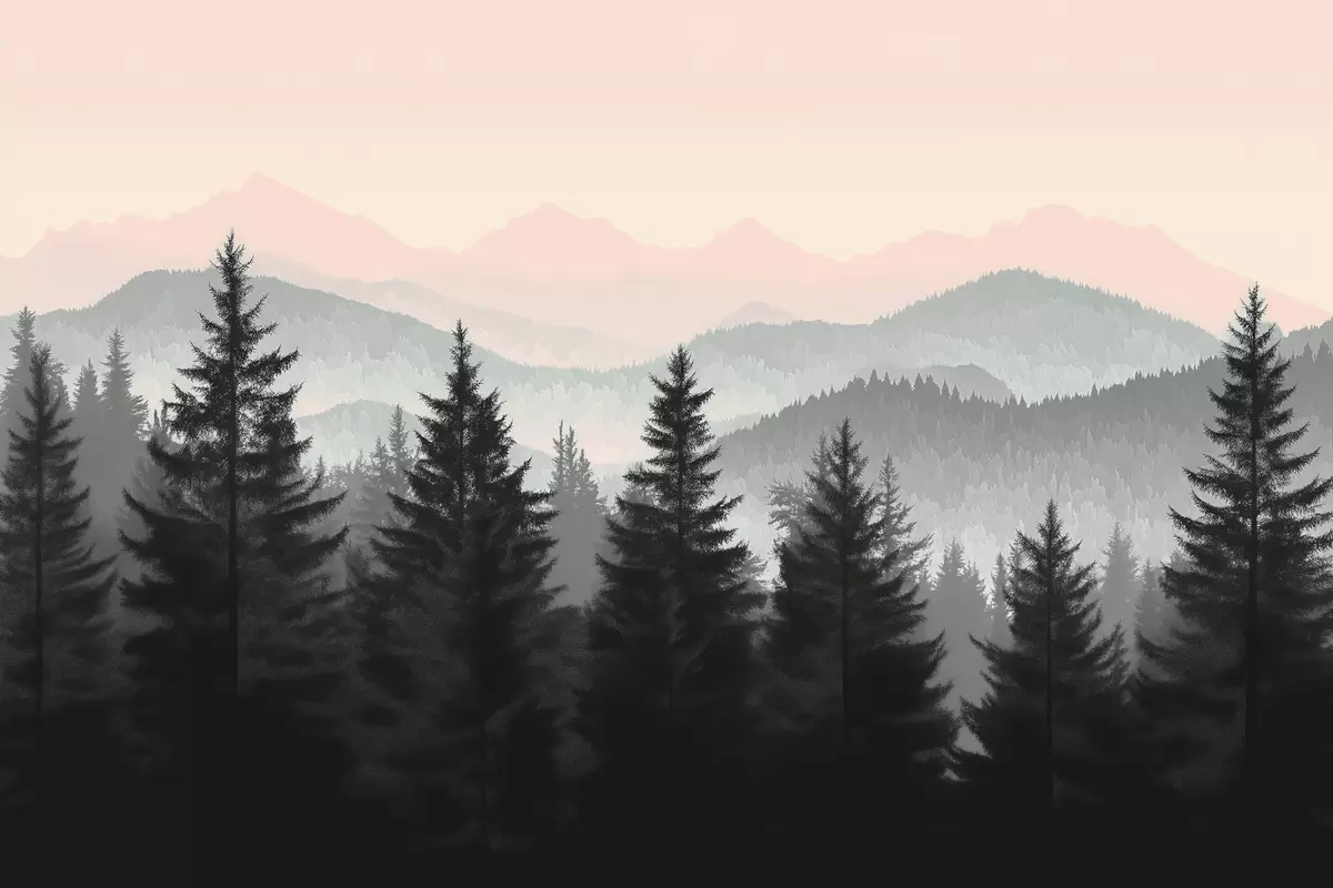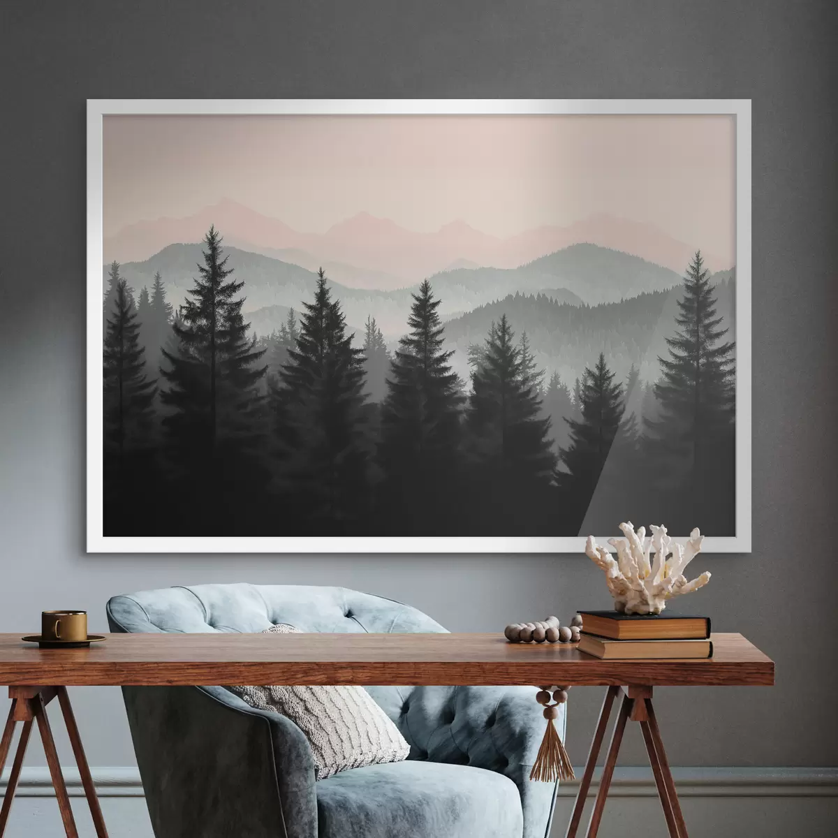 Poster Wald mit Bergen im Hintergrund Nr f40281