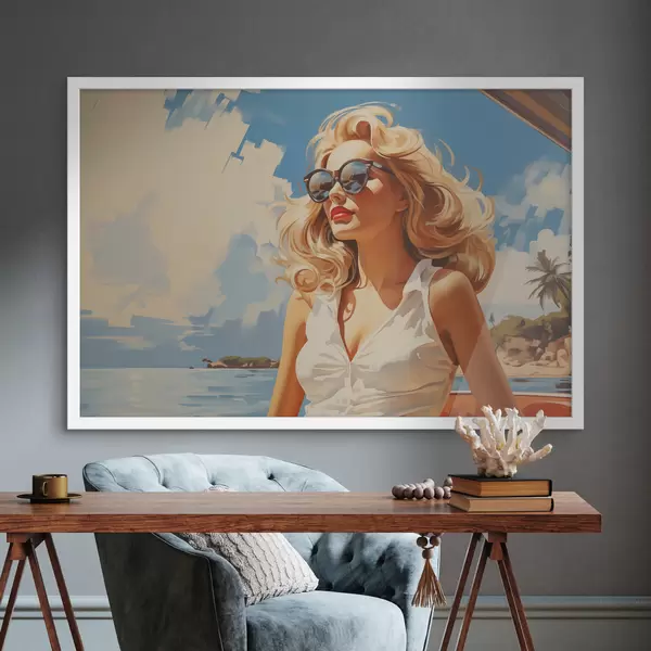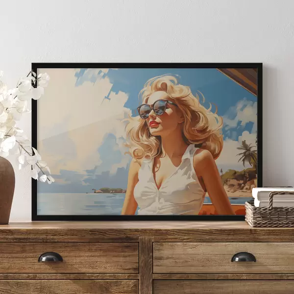 Poster Blondes Mädchen auf dem Meer Hintergrund Illustration Nr f40321