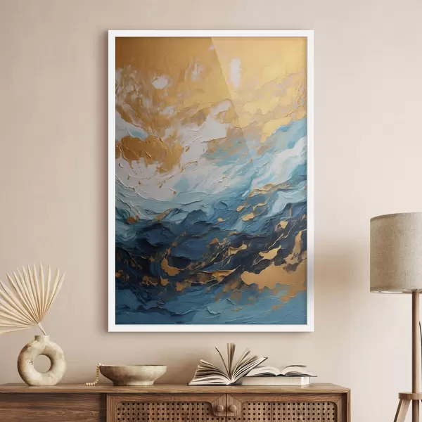 Poster Abstraktes Gemälde mit Blau- und Weißtönen f40328