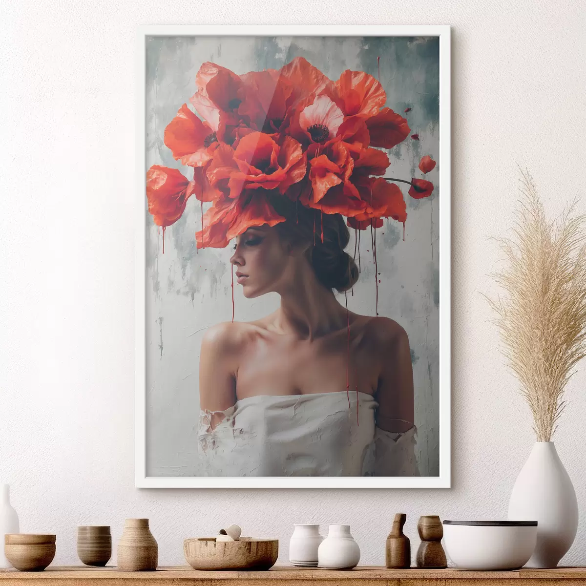Poster Mädchen mit Mohnblumen auf dem Kopf Nr f40338
