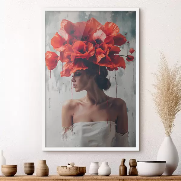 Poster Mädchen mit Mohnblumen auf dem Kopf f40338