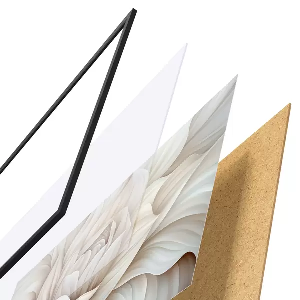 Das Poster besteht aus einem Rahmen, Plexiglas, einem gedruckten Bild und einer Rückwand aus Spanplatten. Dank der Halterungen auf der Rückseite kann das Poster sofort an die Wand gehängt werden.