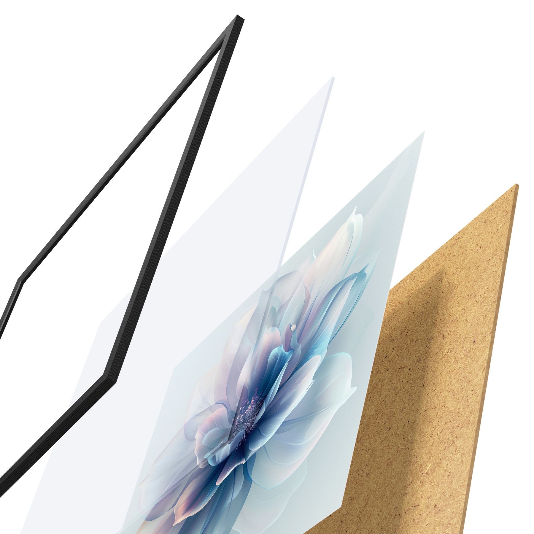Das Poster besteht aus einem Rahmen, Plexiglas, einem gedruckten Bild und einer Rückwand aus Spanplatten. Dank der Halterungen auf der Rückseite kann das Poster sofort an die Wand gehängt werden.