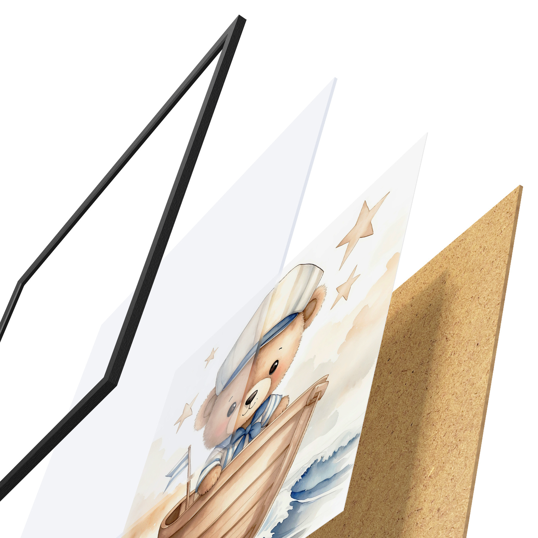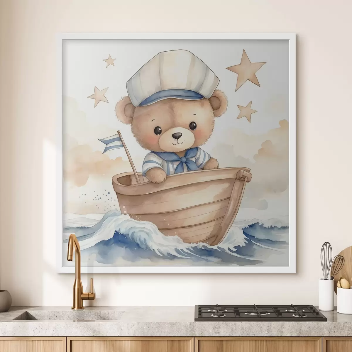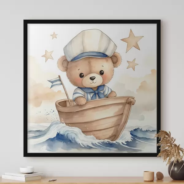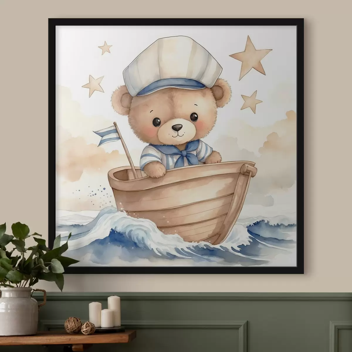 Poster Niedlicher Aquarell-Teddybär in einem Boot Nr f40428