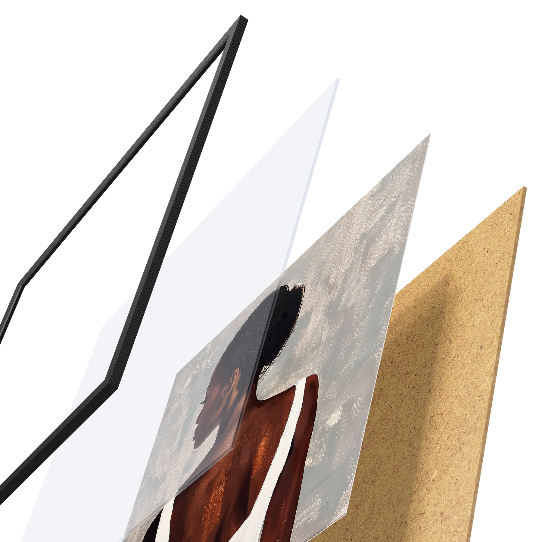 Das Poster besteht aus einem Rahmen, Plexiglas, einem gedruckten Bild und einer Rückwand aus Spanplatten. Dank der Halterungen auf der Rückseite kann das Poster sofort an die Wand gehängt werden.