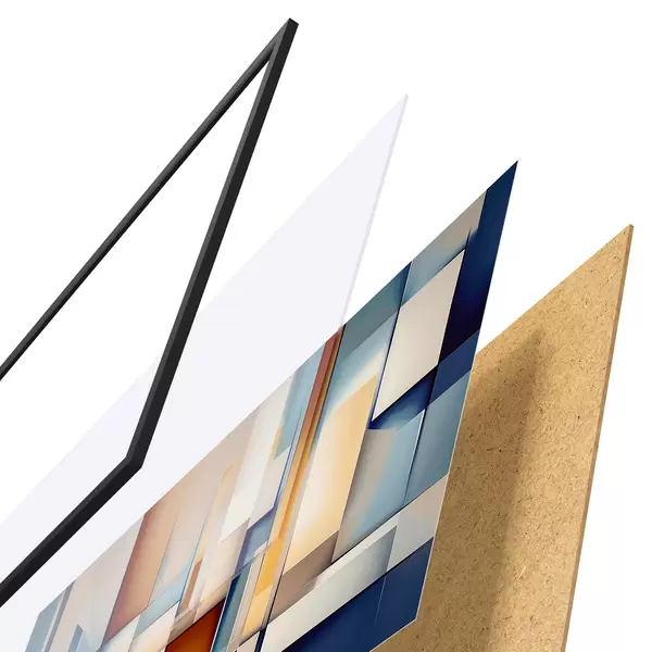 Das Poster besteht aus einem Rahmen, Plexiglas, einem gedruckten Bild und einer Rückwand aus Spanplatten. Dank der Halterungen auf der Rückseite kann das Poster sofort an die Wand gehängt werden.