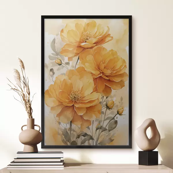 Poster Gelbe Blumen auf unscharfen Hintergrund f40482