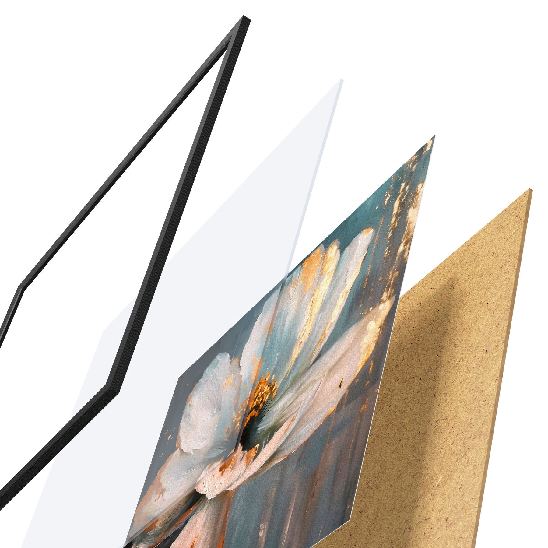 Das Poster besteht aus einem Rahmen, Plexiglas, einem gedruckten Bild und einer Rückwand aus Spanplatten. Dank der Halterungen auf der Rückseite kann das Poster sofort an die Wand gehängt werden.