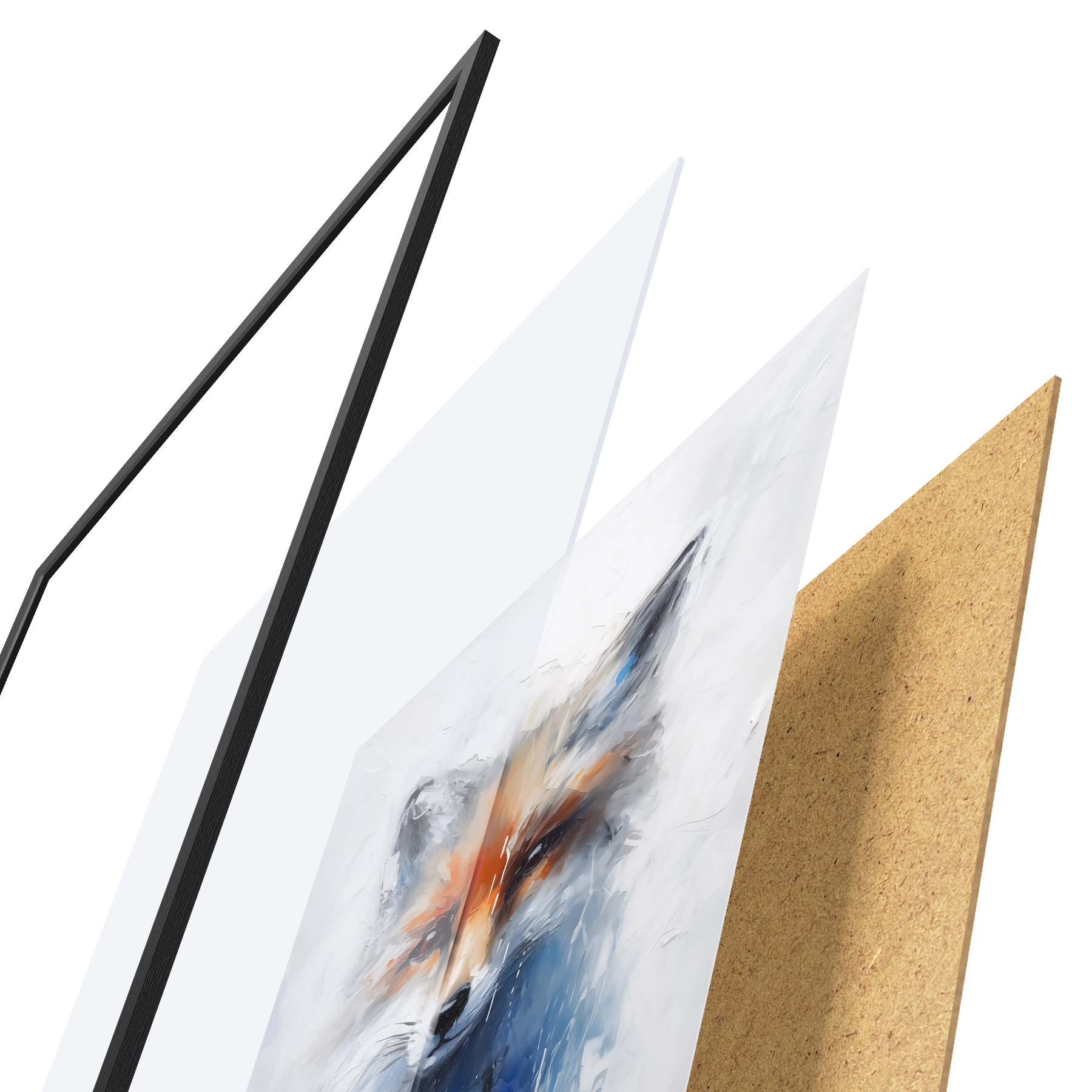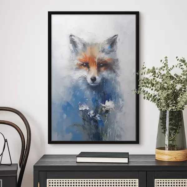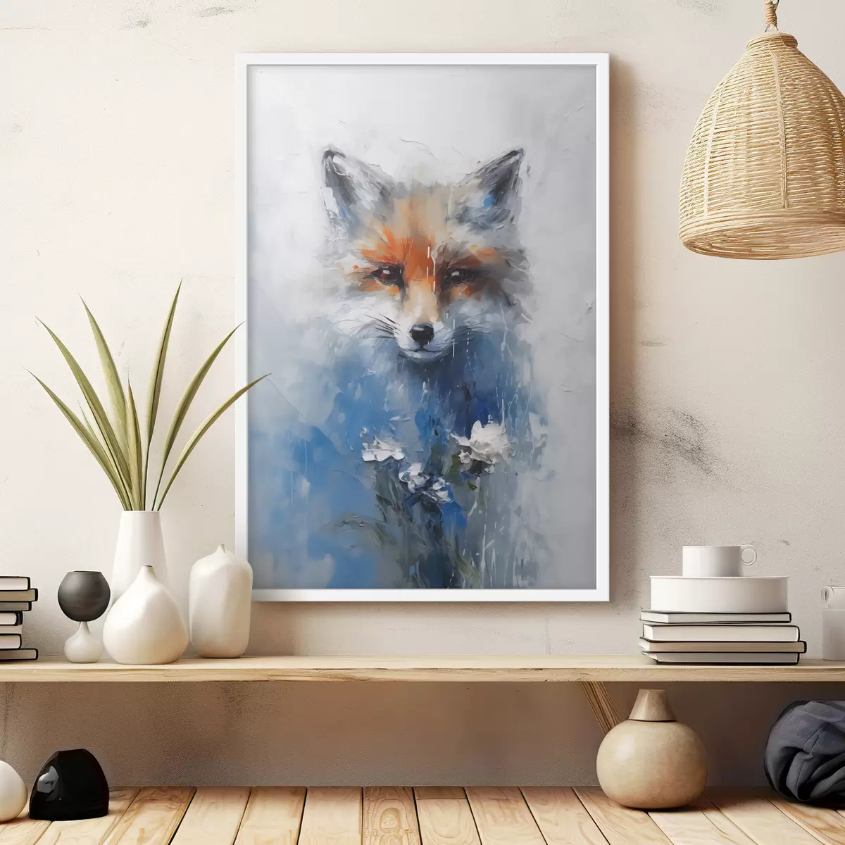 Poster Abstraktes Porträt eines Fuchses in blauen Farbflecken Nr f40524