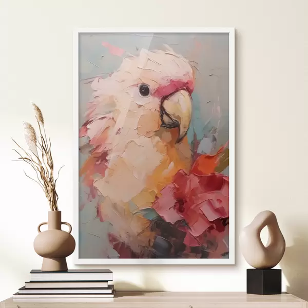 Poster Porträt eines Kakadu-Papageis, rosa, rot, beige, grau Nr f40525
