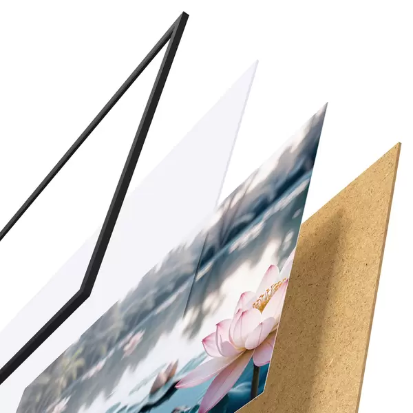 Das Poster besteht aus einem Rahmen, Plexiglas, einem gedruckten Bild und einer Rückwand aus Spanplatten. Dank der Halterungen auf der Rückseite kann das Poster sofort an die Wand gehängt werden.