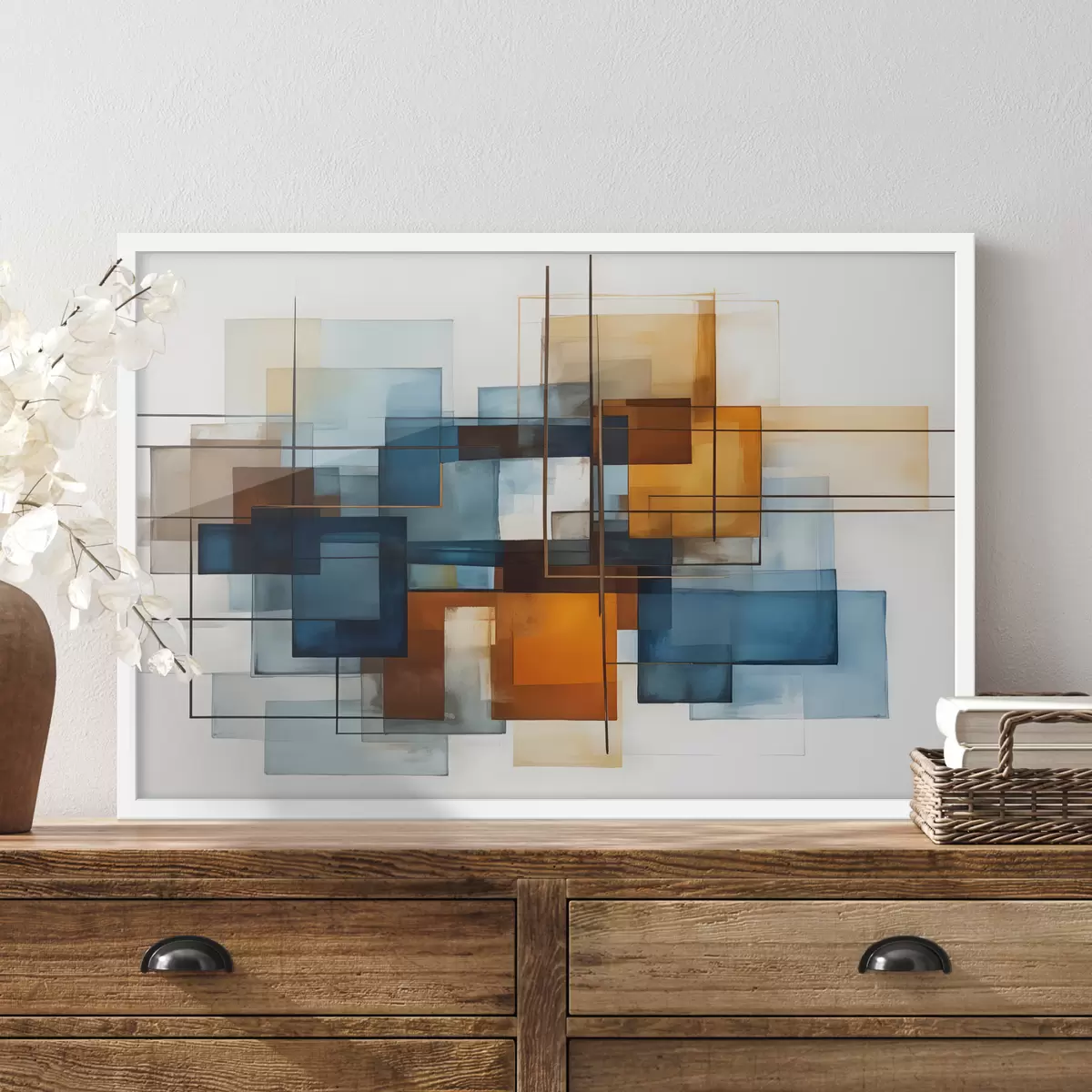 Poster Abstrakte geometrische Formen in Blau-, Orange- und Brauntönen ergeben eine moderne minimalistische Komposition Nr f40563