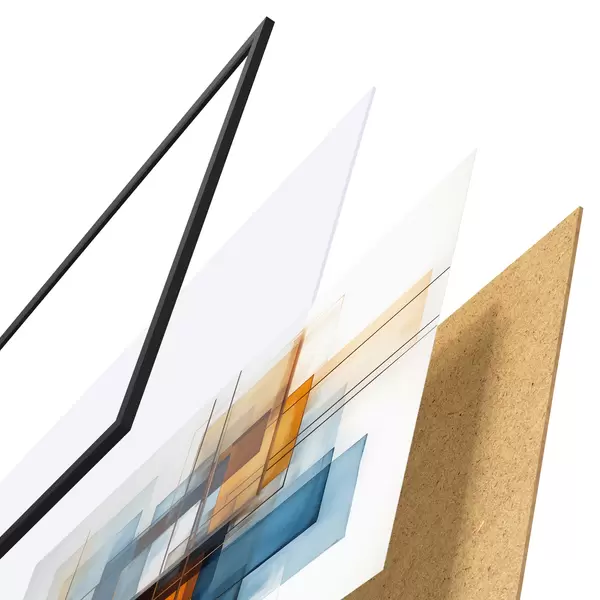 Das Poster besteht aus einem Rahmen, Plexiglas, einem gedruckten Bild und einer Rückwand aus Spanplatten. Dank der Halterungen auf der Rückseite kann das Poster sofort an die Wand gehängt werden.