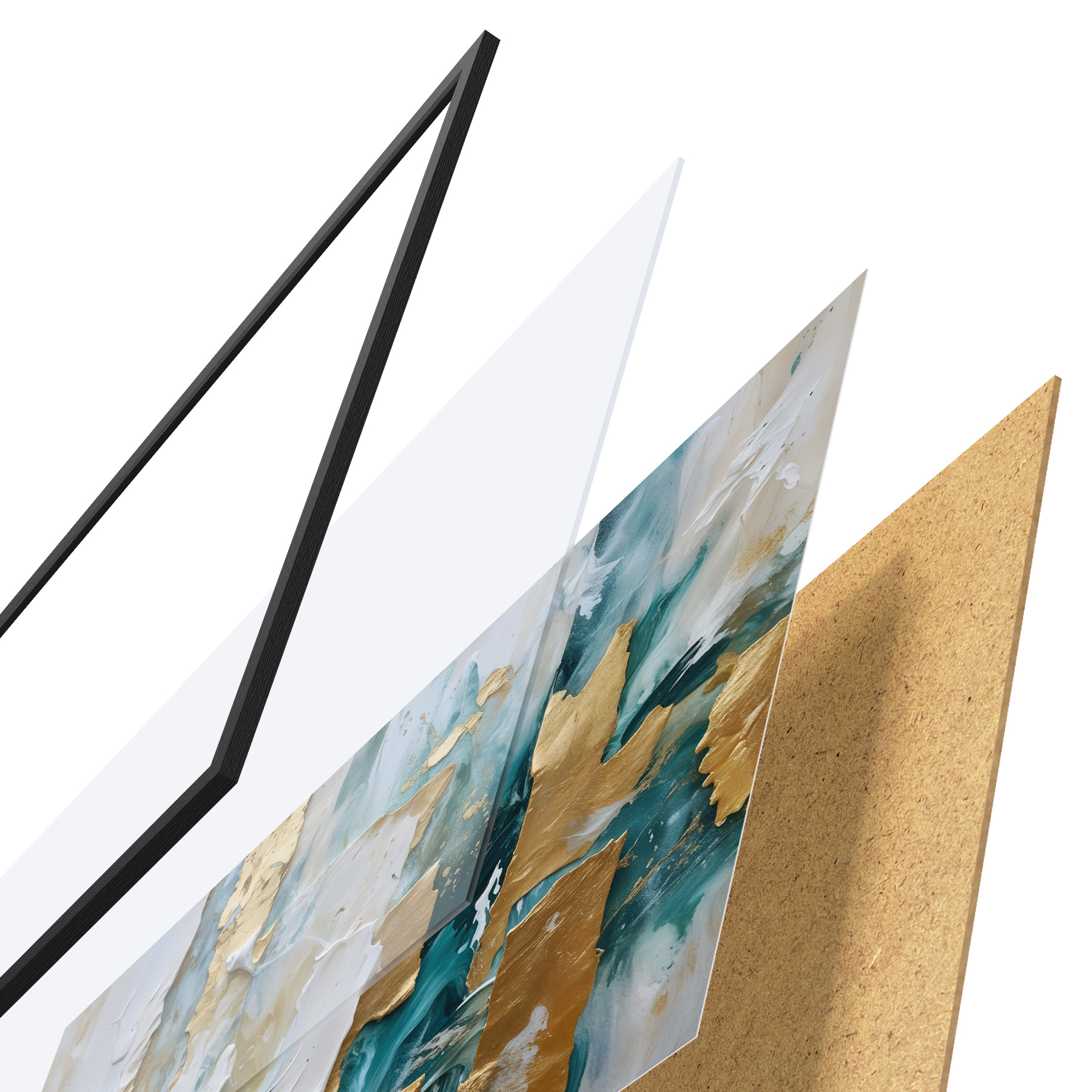 Das Poster besteht aus einem Rahmen, Plexiglas, einem gedruckten Bild und einer Rückwand aus Spanplatten. Dank der Halterungen auf der Rückseite kann das Poster sofort an die Wand gehängt werden.