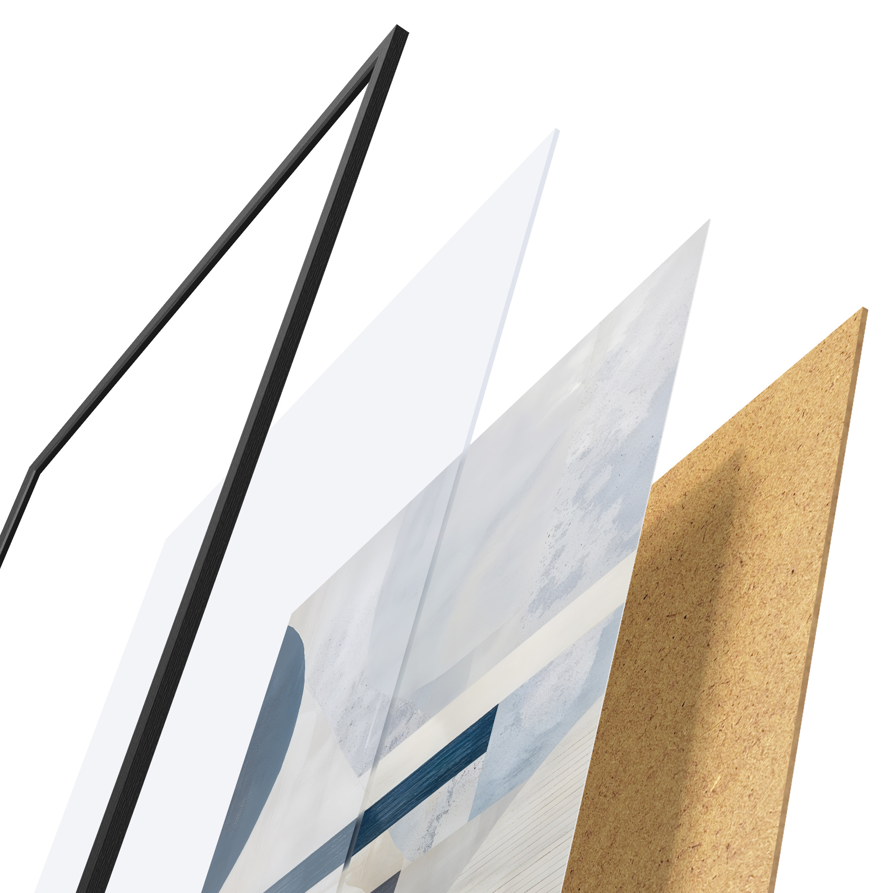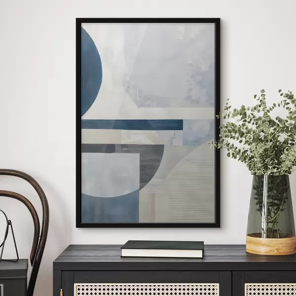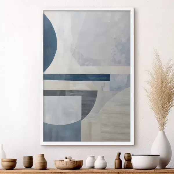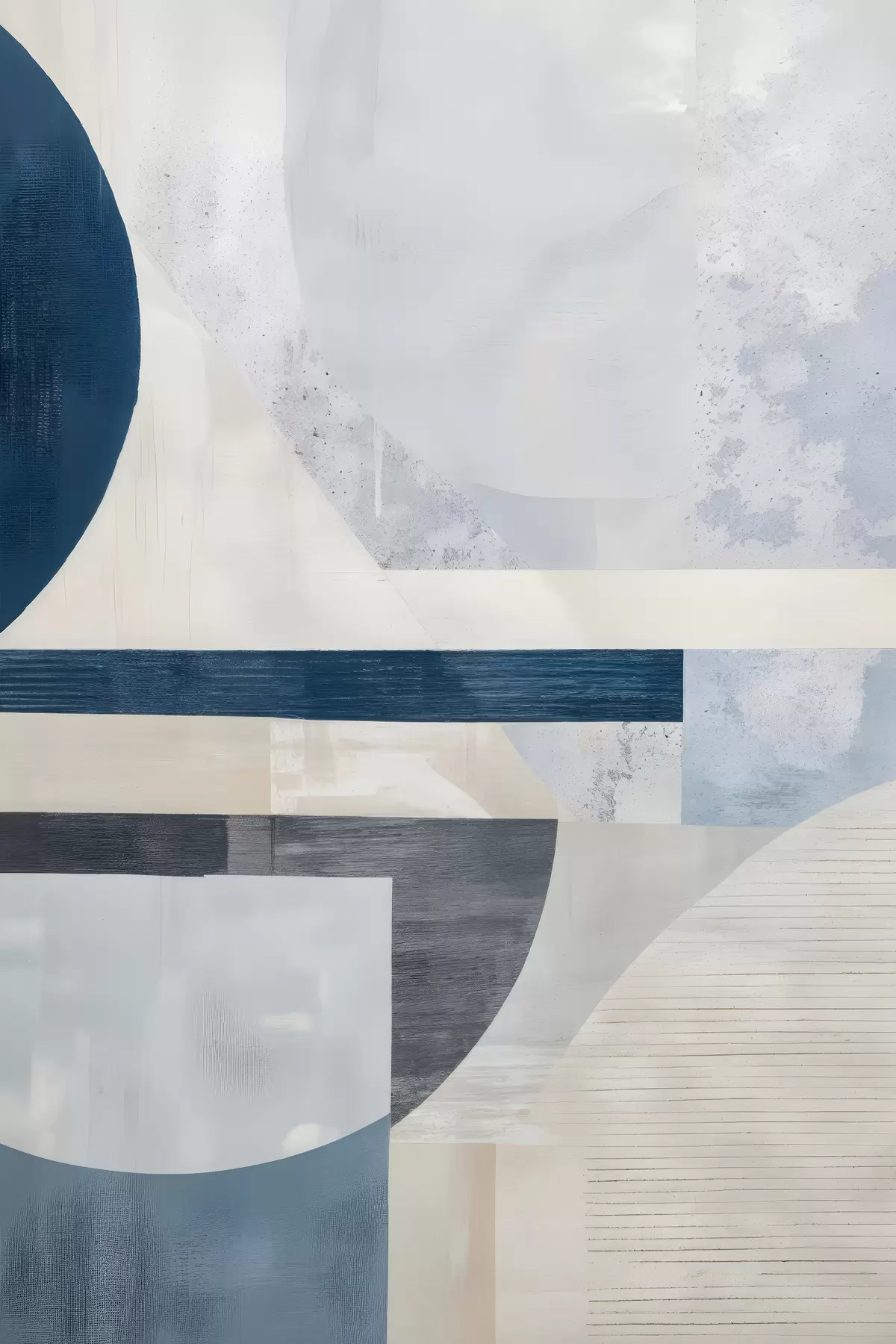 Poster Eine minimalistische Abstraktion mit geometrischen Formen und Texturen in Blau-, Grau- und Weißtönen Nr f40596