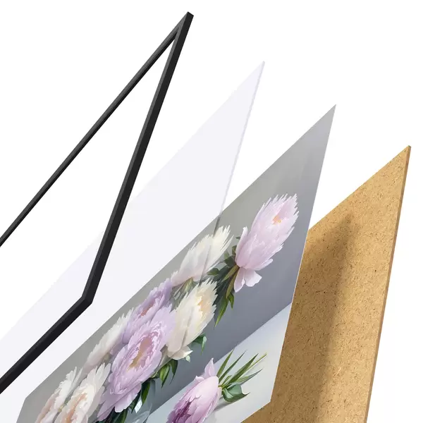 Das Poster besteht aus einem Rahmen, Plexiglas, einem gedruckten Bild und einer Rückwand aus Spanplatten. Dank der Halterungen auf der Rückseite kann das Poster sofort an die Wand gehängt werden.