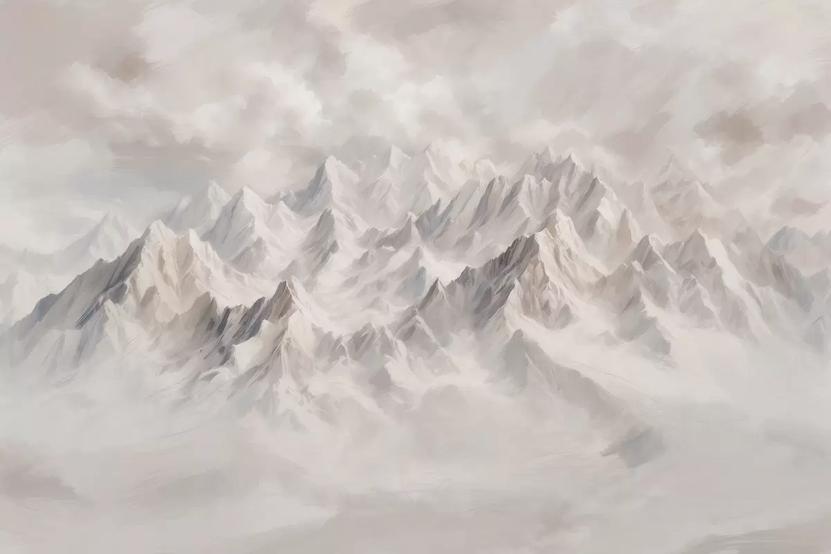 Poster Weiß verschneite Berge im Nebel Nr f40629