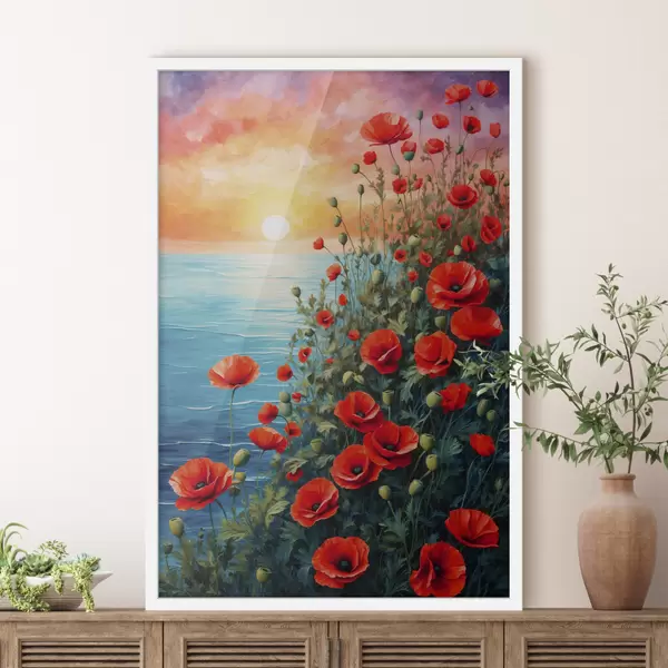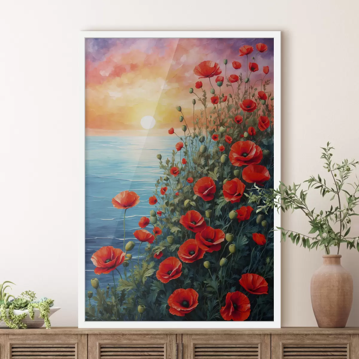Poster Blühende Mohnblumen auf dem Meer Hintergrund Nr f40637
