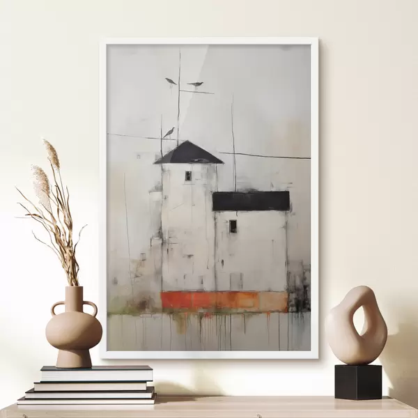 Poster Weiße Häuser mit schwarzen Dächern malen mit der Textur von Kratzern und Abrieb von Schmutz Nr f40685