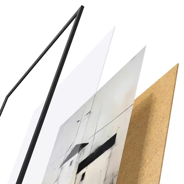 Das Poster besteht aus einem Rahmen, Plexiglas, einem gedruckten Bild und einer Rückwand aus Spanplatten. Dank der Halterungen auf der Rückseite kann das Poster sofort an die Wand gehängt werden.