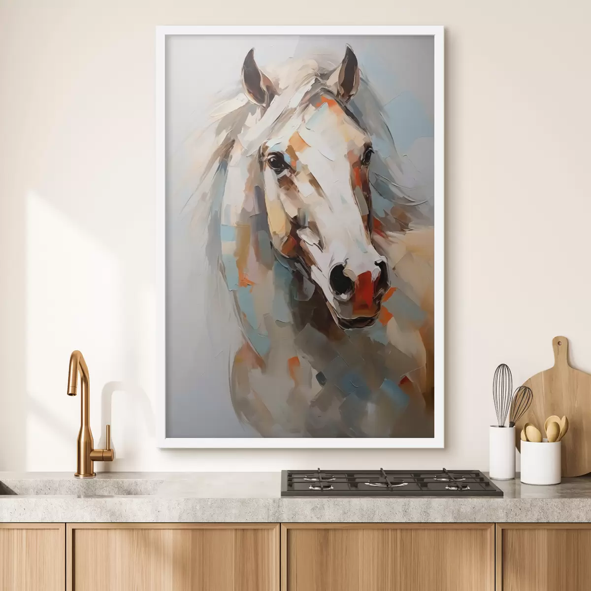 Poster Abstraktes Porträt eines weißen Pferdes Nr f40686