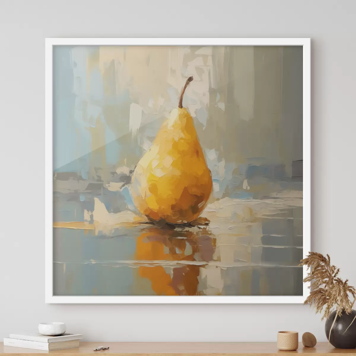 Poster Birne auf pastellfarbenem Hintergrund, gelb, orange, grau Nr f40690