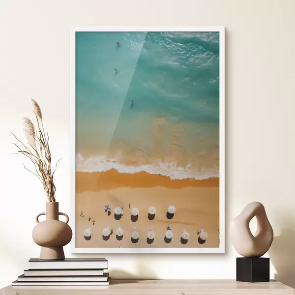 Poster Minimalistische Landschaftsansicht von oben auf Meer und Strand f40725