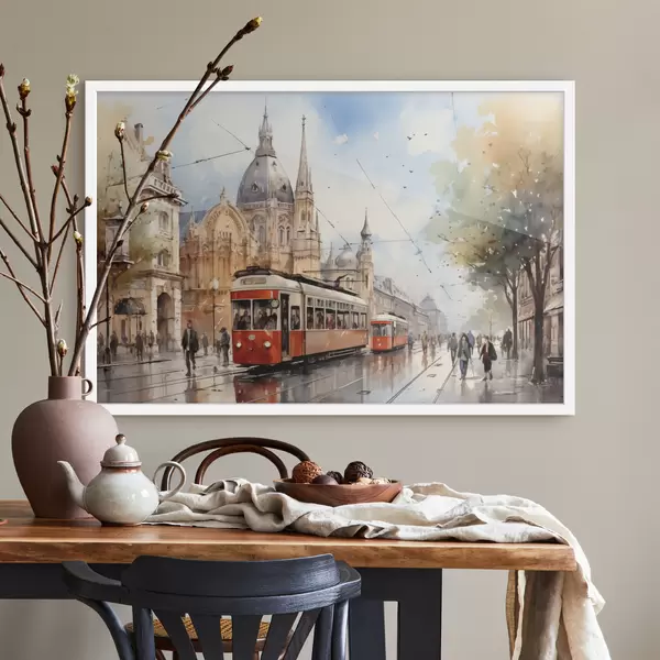 Poster Rote Straßenbahn auf der Straße von Wien Aquarell Nr f40732