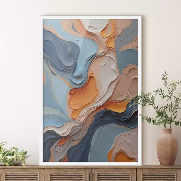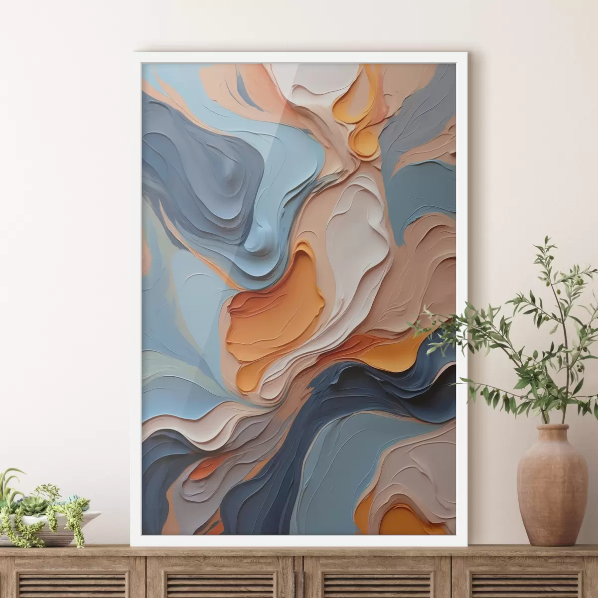 Poster Abstraktion in Blau- und Orangetönen mit imitierter Textur Nr f40743