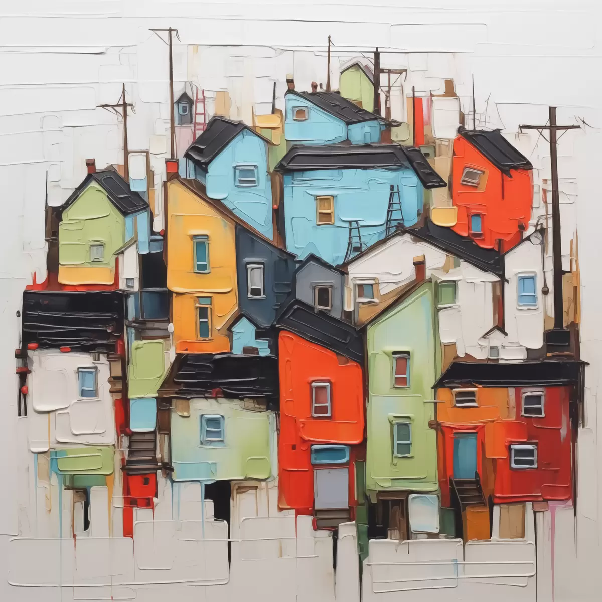 Poster Abstrakte Häuser Nachahmung Pinselstrich Nr f40760