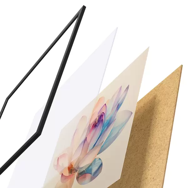 Das Poster besteht aus einem Rahmen, Plexiglas, einem gedruckten Bild und einer Rückwand aus Spanplatten. Dank der Halterungen auf der Rückseite kann das Poster sofort an die Wand gehängt werden.