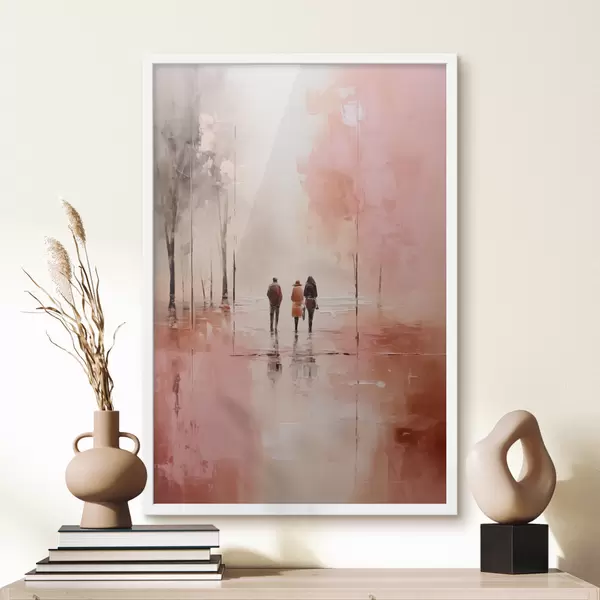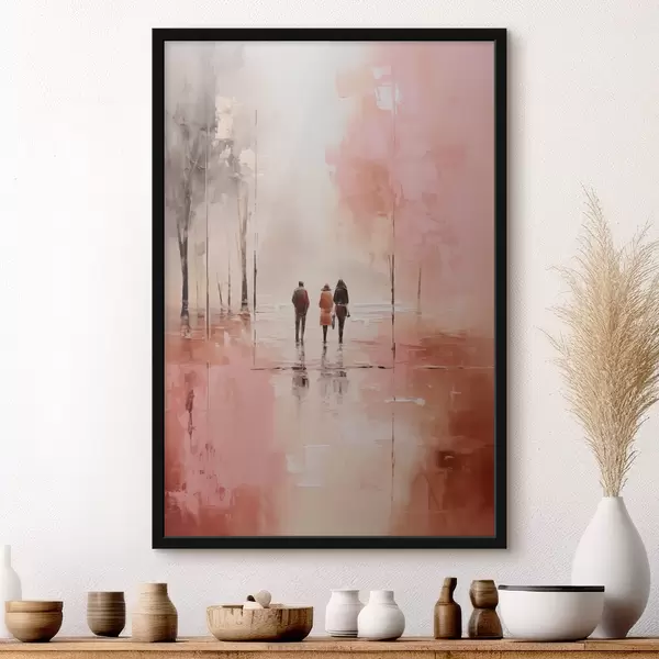 Poster Menschen zu Fuß in den Park abstrakt, rosa rote Farbe Nr f40802