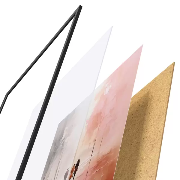 Das Poster besteht aus einem Rahmen, Plexiglas, einem gedruckten Bild und einer Rückwand aus Spanplatten. Dank der Halterungen auf der Rückseite kann das Poster sofort an die Wand gehängt werden.