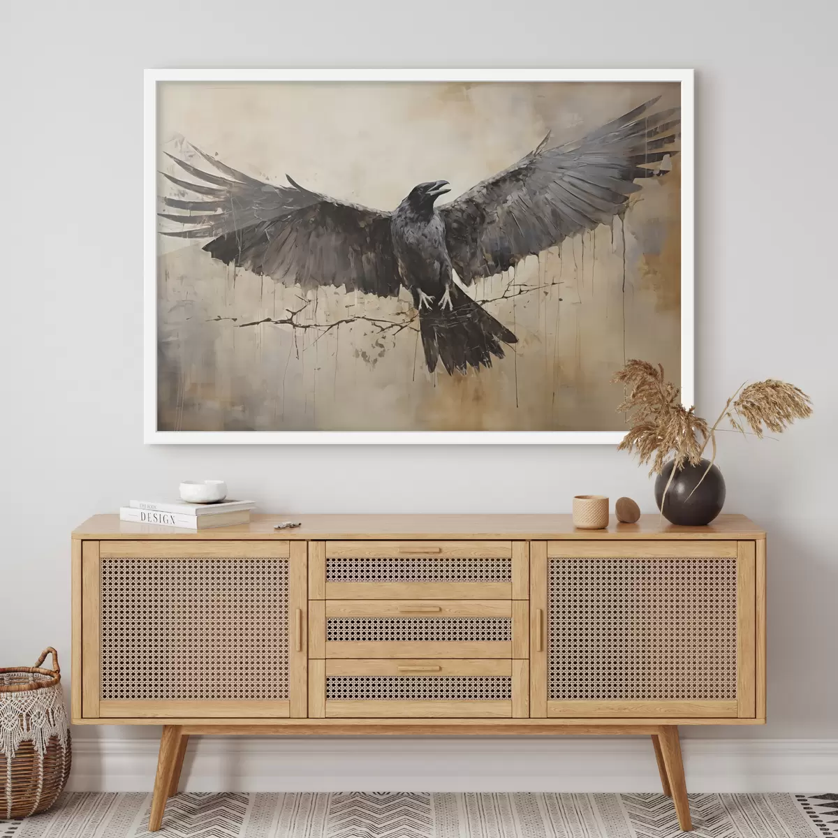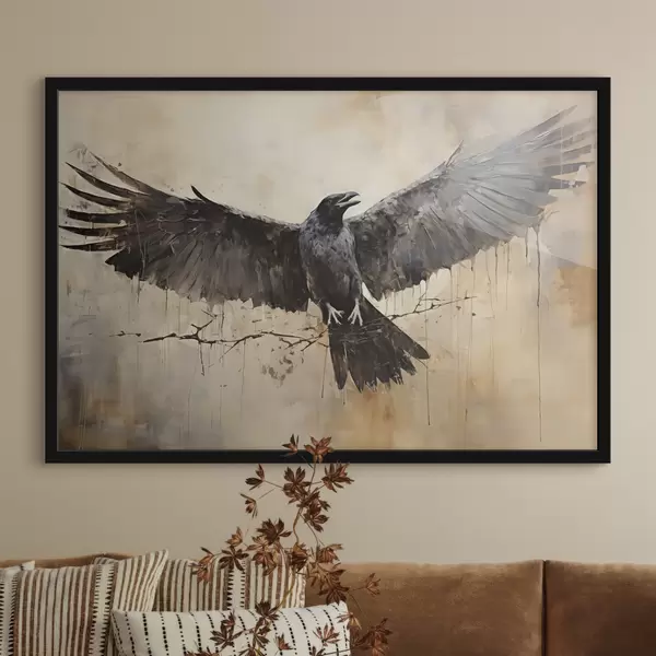 Poster Der schwarze Rabe breitet seine Flügel aus Nr f40809
