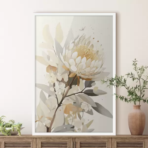 Poster Protea-Blüte in zartbeiger Farbpalette, florale Abstraktion Nr f40819