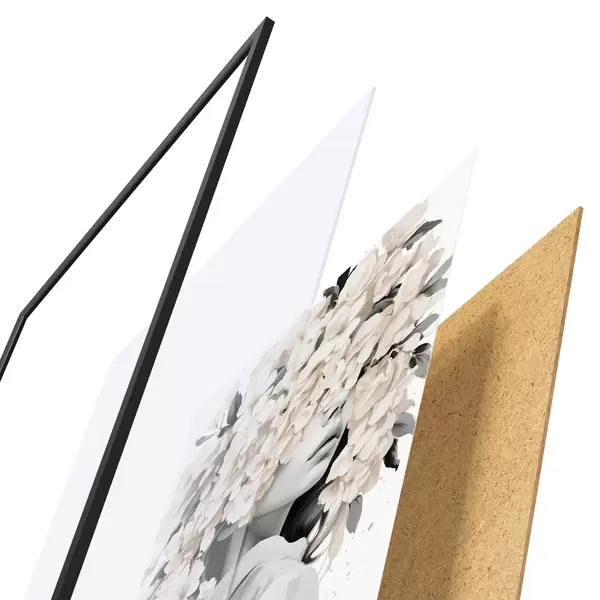 Das Poster besteht aus einem Rahmen, Plexiglas, einem gedruckten Bild und einer Rückwand aus Spanplatten. Dank der Halterungen auf der Rückseite kann das Poster sofort an die Wand gehängt werden.