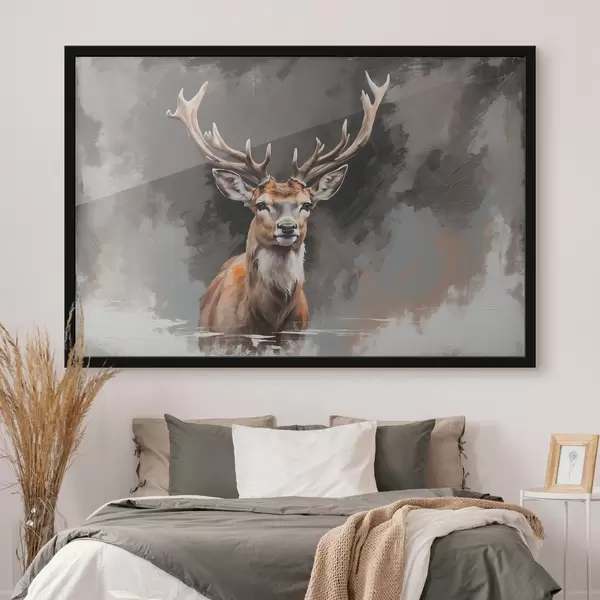 Poster Hirsche auf grau-schwarzem Hintergrund f40865