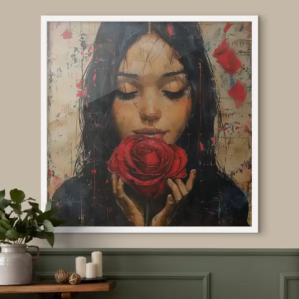 Poster Mädchen mit einer roten Rose Nr f40898