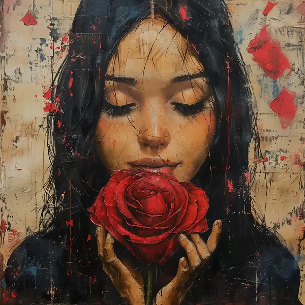 Poster Mädchen mit einer roten Rose Nr f40898