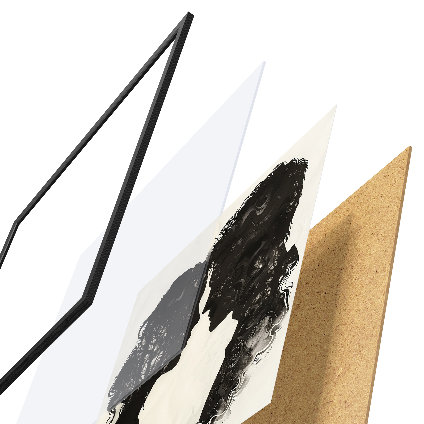 Das Poster besteht aus einem Rahmen, Plexiglas, einem gedruckten Bild und einer Rückwand aus Spanplatten. Dank der Halterungen auf der Rückseite kann das Poster sofort an die Wand gehängt werden.
