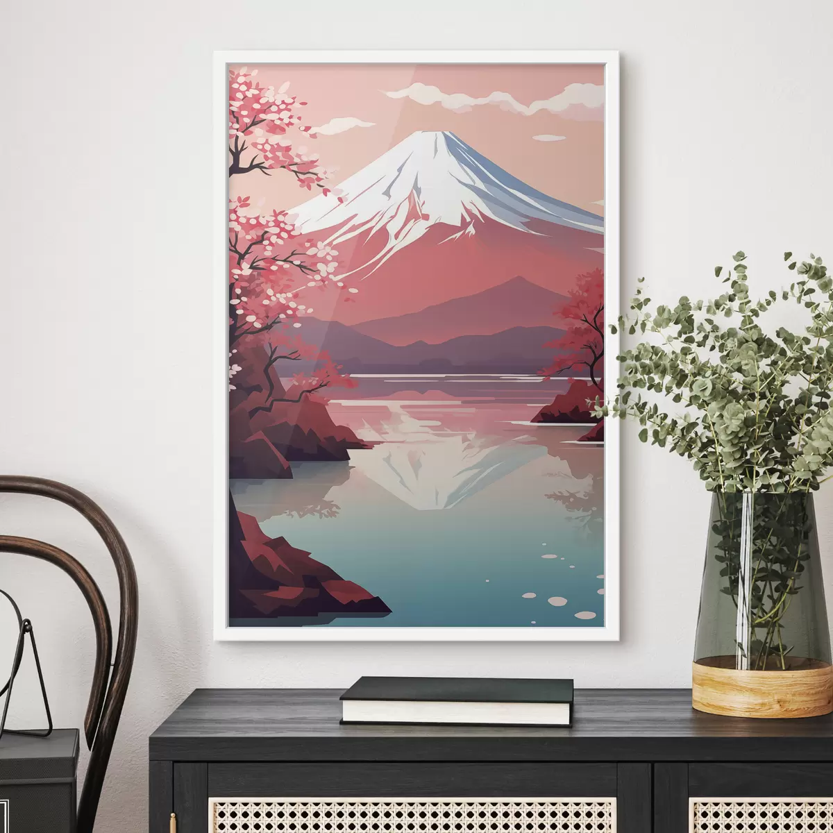 Poster Berg Fuji, See, Kirschbäume, Japan Nr f40955