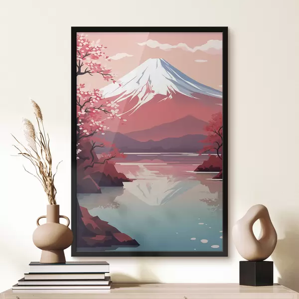 Poster Berg Fuji, See, Kirschbäume, Japan f40955