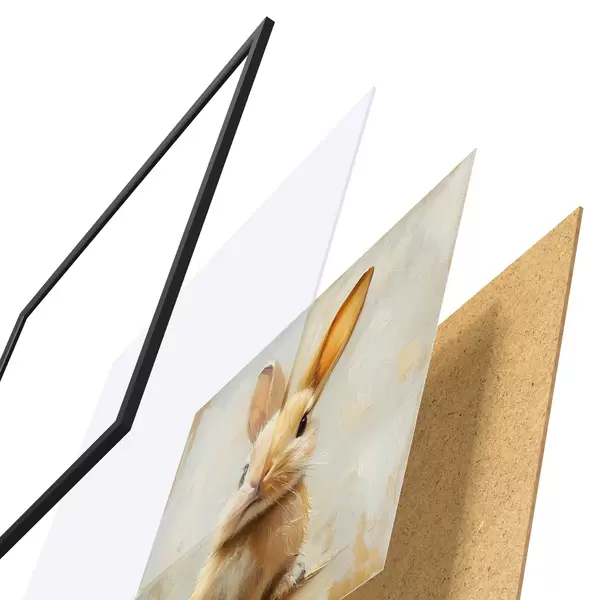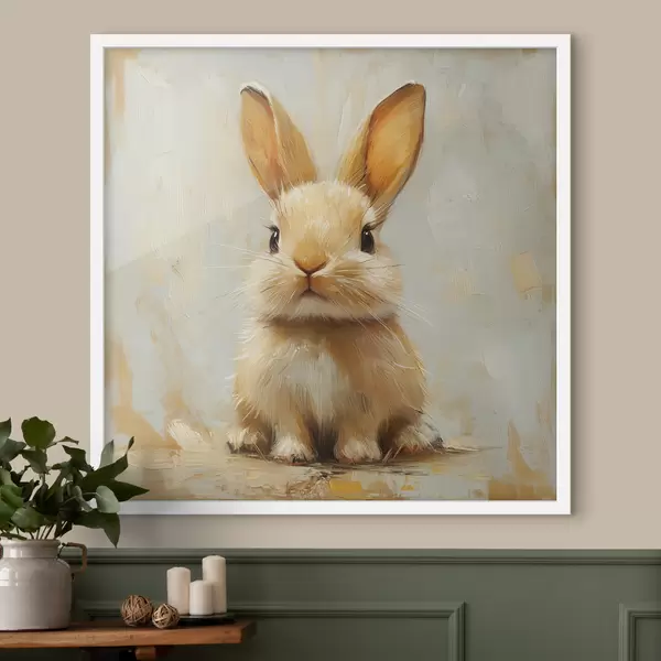 Poster Beigefarbener Hase auf hellem Hintergrund mit kräftigen Pinselstrichen Nr f41000