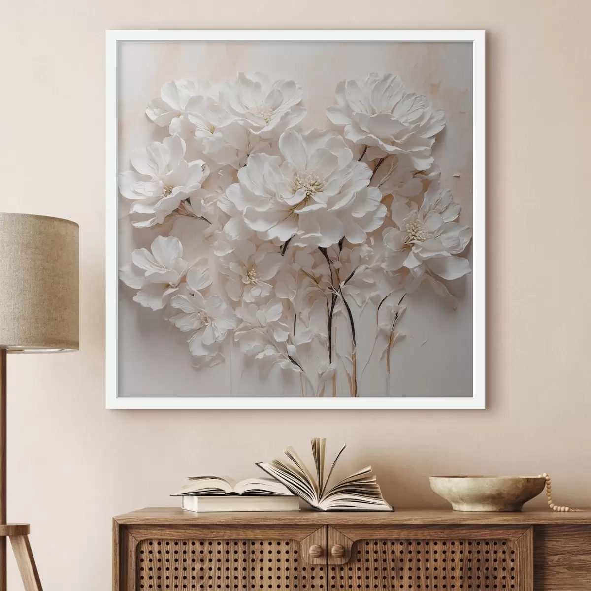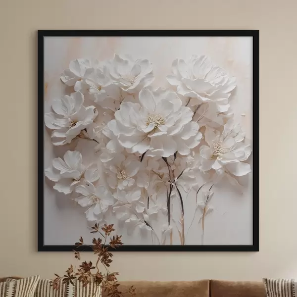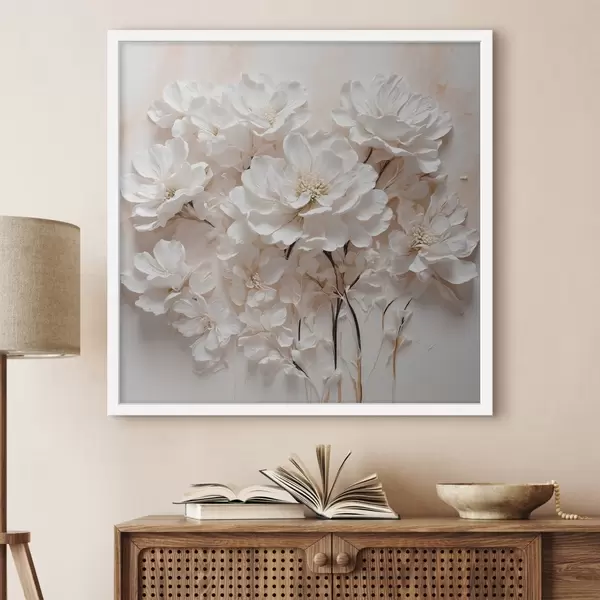 Poster Weiße Blumen auf weiß-orangem Hintergrund f41042