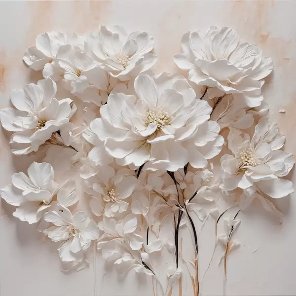 Poster Weiße Blumen auf weiß-orangem Hintergrund Nr f41042